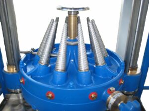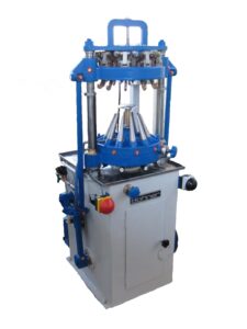 Three operating speeds can be chosen with 15, 18 and 26 seconds. The machine is driven with the help of 2 electric motors. The output capacity is between 900 an 1400 hat bodies in 8 hour shift. A worker can serve 2 Brim Breaking machines or one Automatic Tip Stretching machine and one Brim Breaking machine.